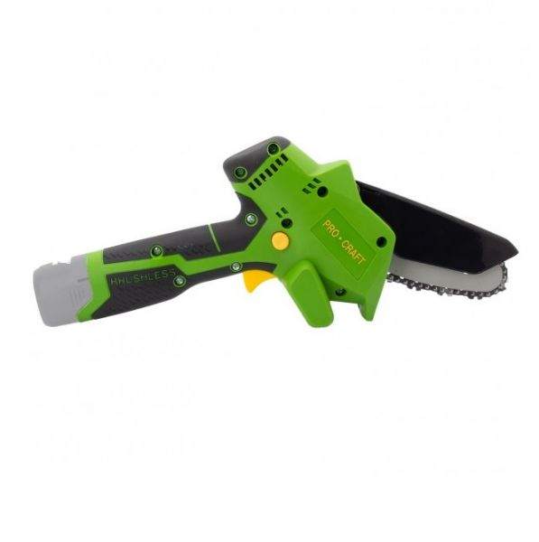 AKU jednoruční řetězová pila je díky svým kompaktím rozměrům užitečným pomocníkem při prořezávání stromů a keřů při práci v omezeném prostoru. Její provoz je v porovnání s většími stroji tichý. Je vybavena ochranou proti zpětnému rázu a bezpečnostním krytem pilového řetězu. Stroj je dodávaný včetně vodící lišty a pilového řetězu v kartonu s montážním klíčem a nádobou na mazací olej - bez akumulátoru a nabíječky. Obr.2 POKYNY K INSTALACI ŘETĚZU
